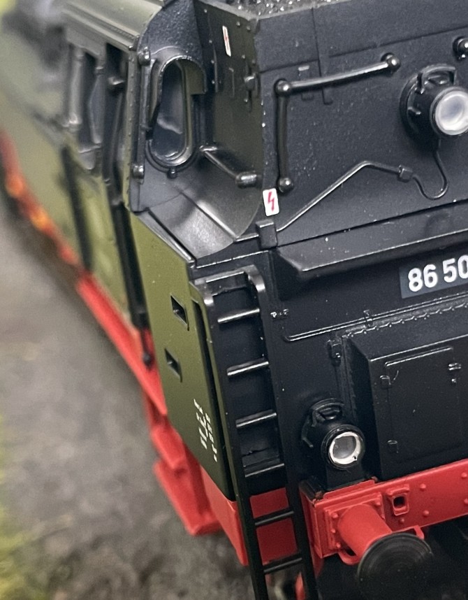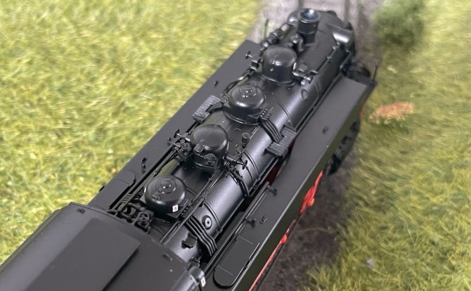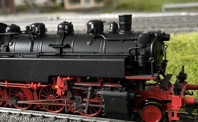 Im Bild unten kann man die Detaillierung mit den vielen freistehenden Leitungen am Kessel bereits erkennen.