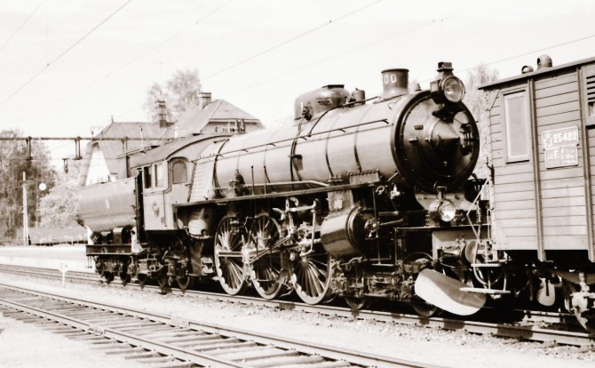 Die F1207 in den 1920er Jahren vor einem Reisezug. Copyright: Stig Nyberg / Slg. Jänvägsmuseet Gävle