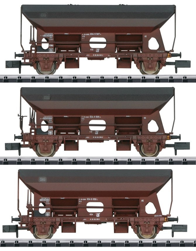 Das vierteilige Set enthält je einen Niederbordwagen Rmrso 31, einen zweiachsigen Kesselwagen, einen Silowagen Kds 56 der VTG und einen Seitenentladewagen Ktmmvs 69. Alle Wagen sind bei der Deutschen Bundesbahn eingestellt. Der Niederbordwagen ist mit Stahlstangen beladen. Der Selbst- oder Seitenentladewagen ist werkseitig mit fein bedruckten Schlussscheiben versehen.
